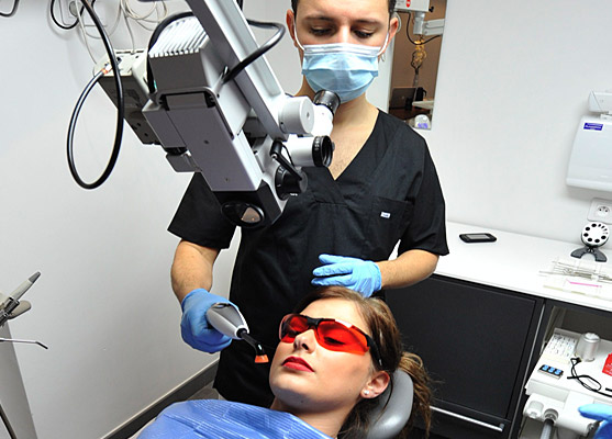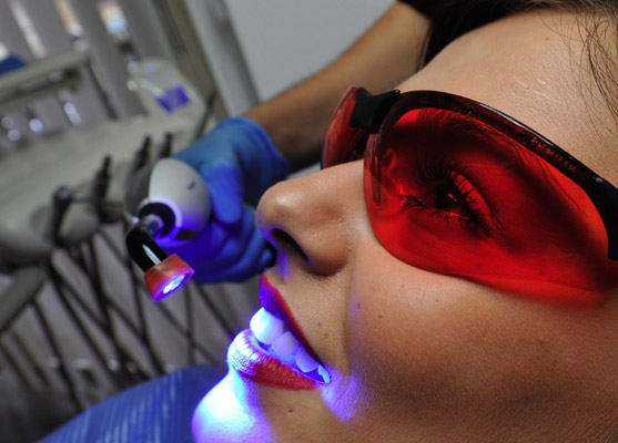 Ce système permet le blanchiment dentaire en une seule visite chez le dentiste. Le procédé nécessite premièrement l'application par le dentiste d'un gel protecteur sur la gencive car celle-ci peut être irritée par le peroxyde. Ensuite, l'agent blanchissant est apposé directement sur les dents et le blanchiment est accéléré par une source de lumière. La concentration en peroxyde de ce procédé étant plus élevée que les autres systèmes de blanchiment, on atteint alors un meilleur résultat.